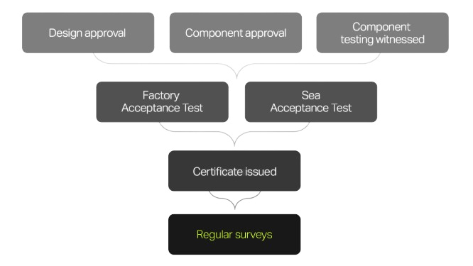2. DNV will witness the overall system Factory Acceptance Test (FAT) and the Sea Acceptance Test (SAT) with the habitat on the seabed to confirm the final installation, operation, and compliance of the habitat. At that point, we will have submitted all evidence to allow for the full approval and classification of Vanguard. Once DNV has reviewed and approved every element, a class certificate will be issued.