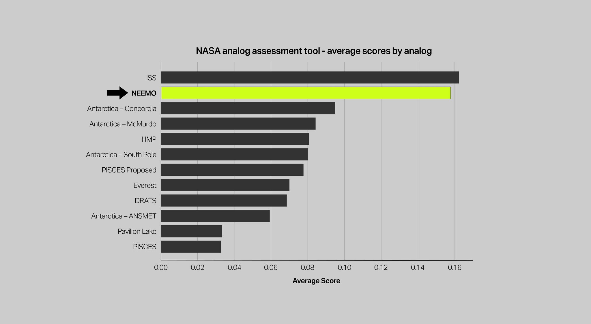 NASA rated NEEMO, its subsea human habitat operation, as a near-equivalent to the International Space Station for simulating spaceflight behavioural health and performance conditions.[1]